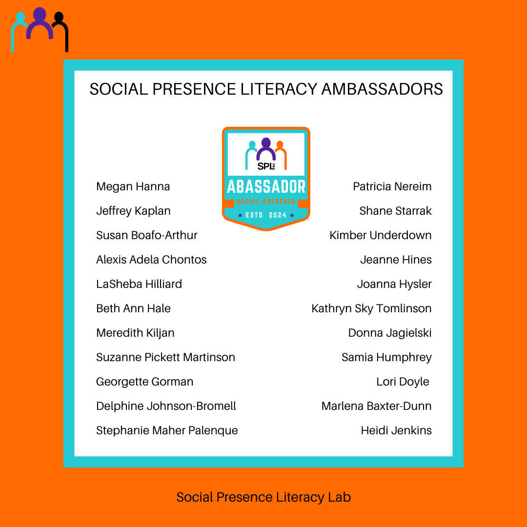 Social Presence Literacy Ambassadors are dedicated educators and professionals ready to deepen their impact. This tier provides unique opportunities to actively contribute to the lab’s mission while enhancing your skills and influence in the field.