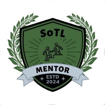 The SoTL Mentor Badge honors experienced educators who provide guidance, support, and mentorship to their peers in SoTL endeavors, fostering a culture of collaboration and professional development within the academic community.